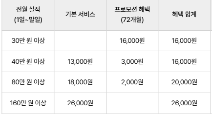 예: 일정 금액 이상 사용 시 월간 할인을 받는 조건.